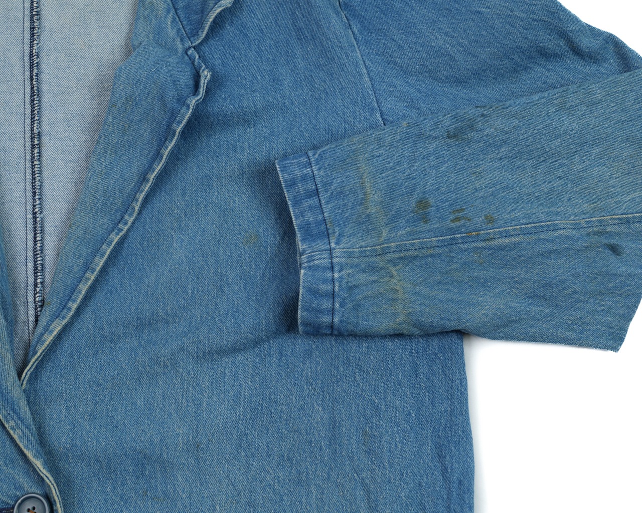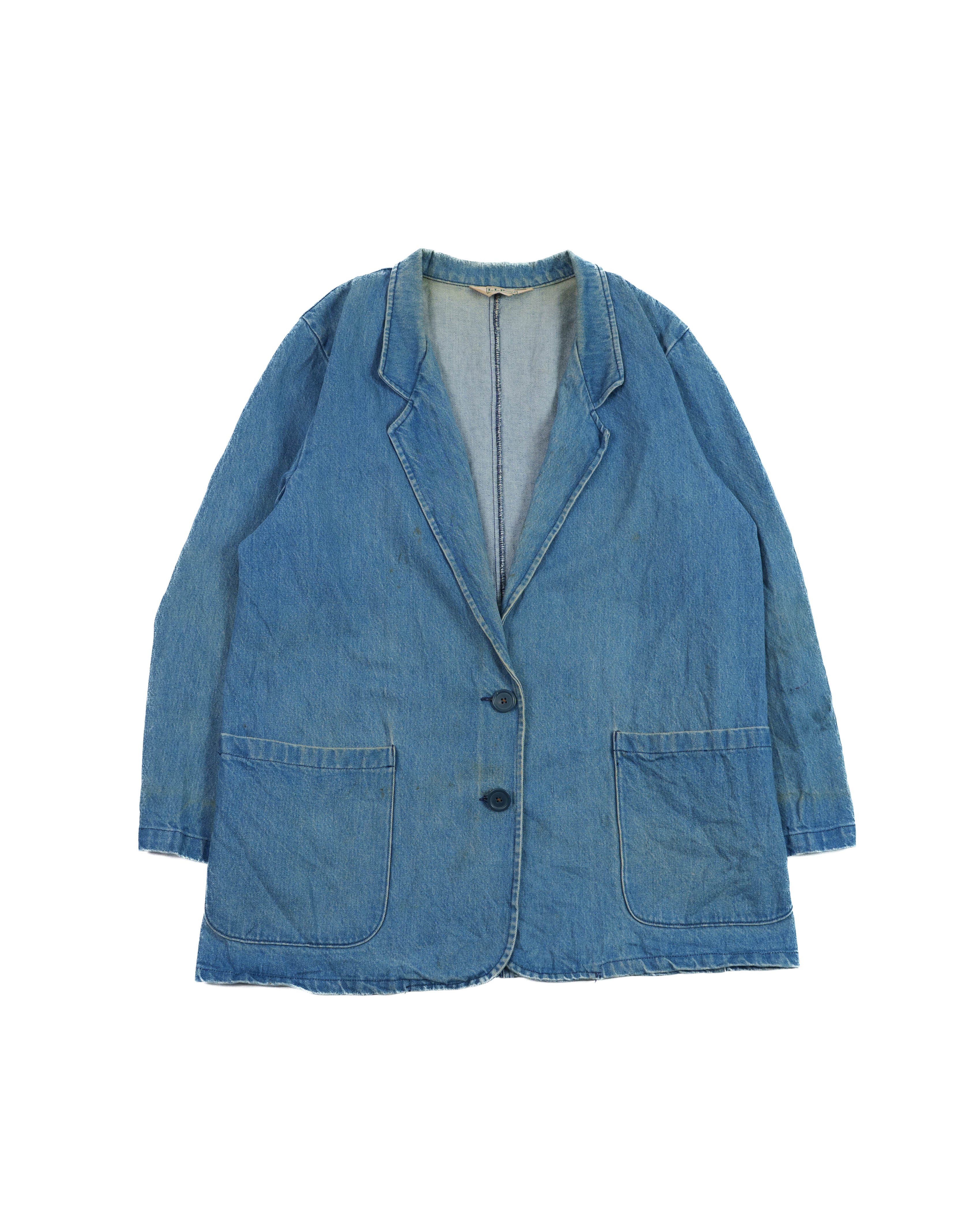 L.LBean for women のデニムテーラードジャケットです。180cmほどの男性でも着れるサイズ感で、アトリエコートのような感覚でファッションに取り入れることができ、非常に面白いなということで仕入れてみました。